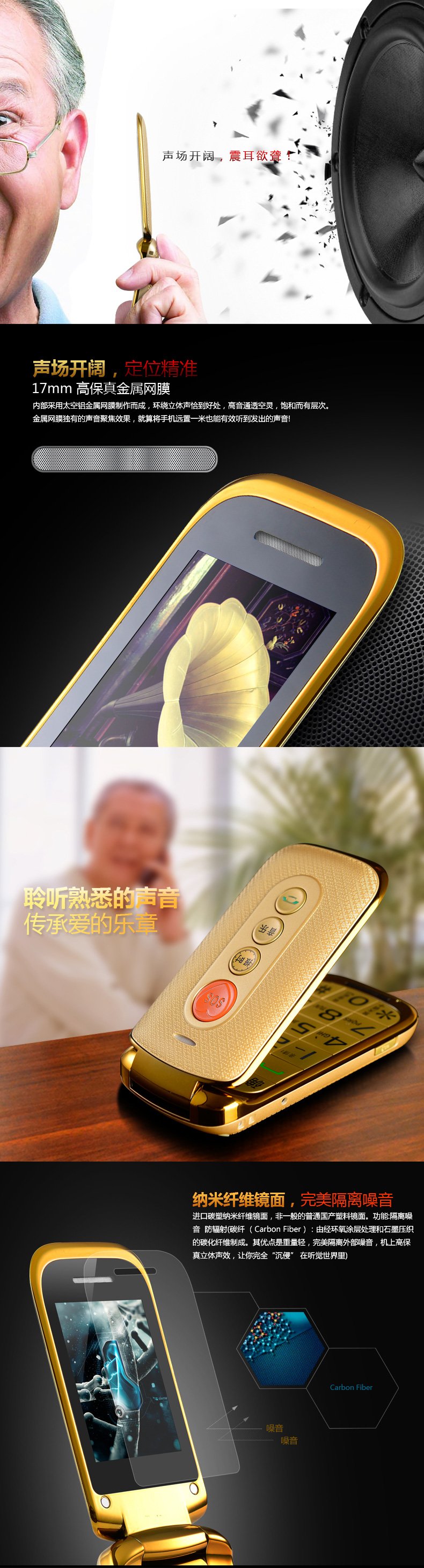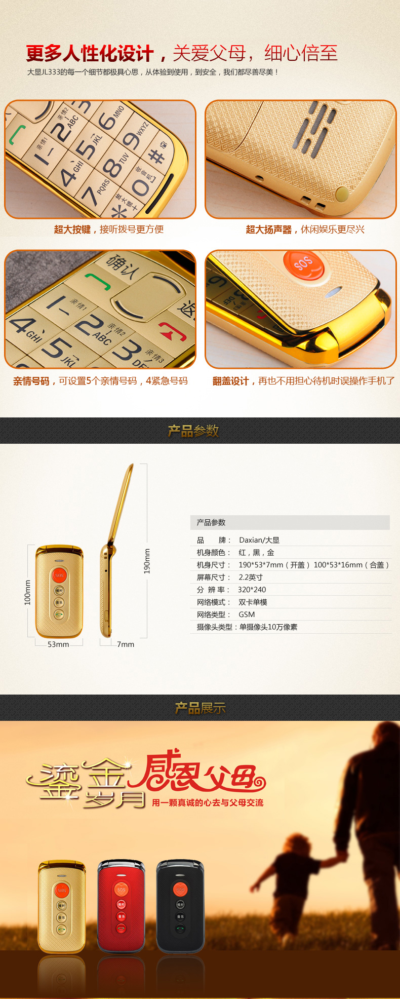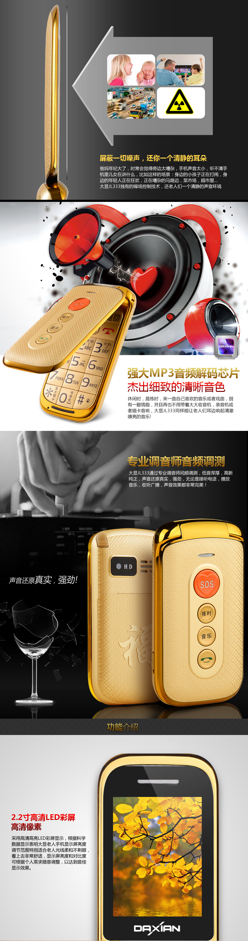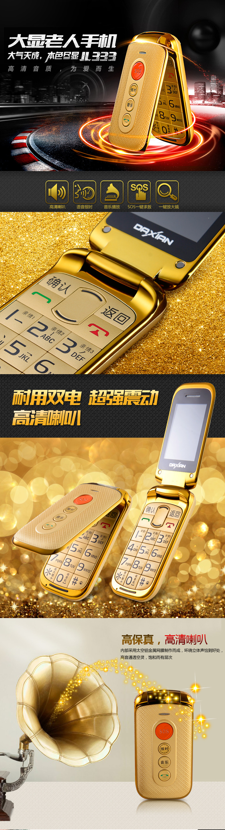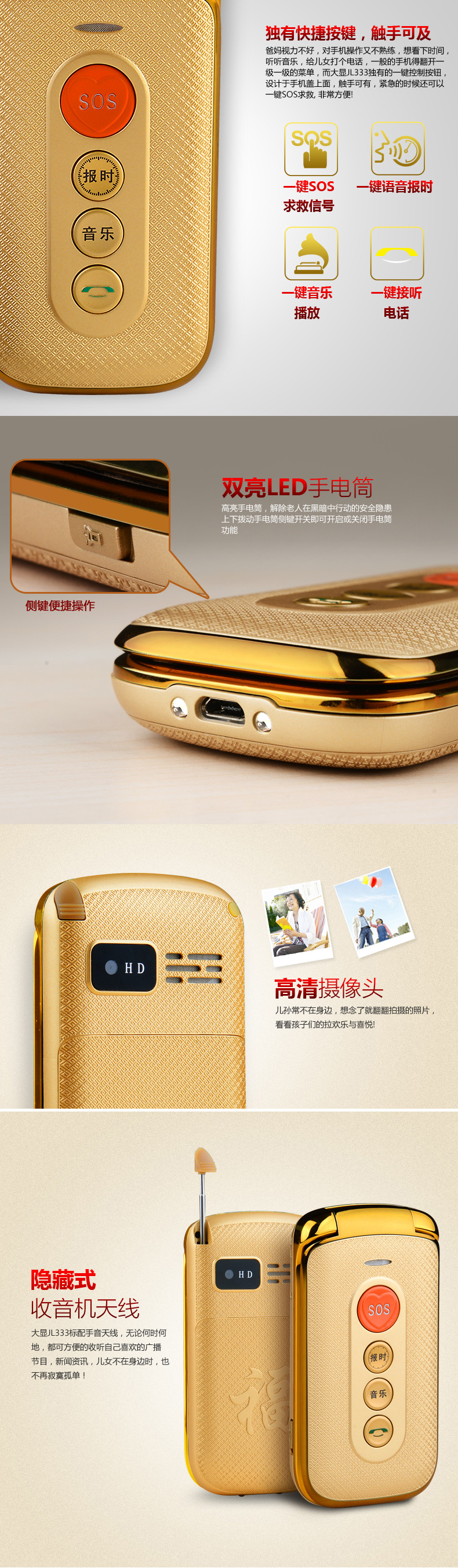 大顯老人手機(jī)JL333詳情頁(yè)設(shè)計(jì) 高清音質(zhì),為愛(ài)而生