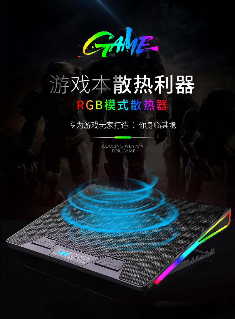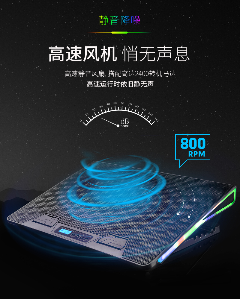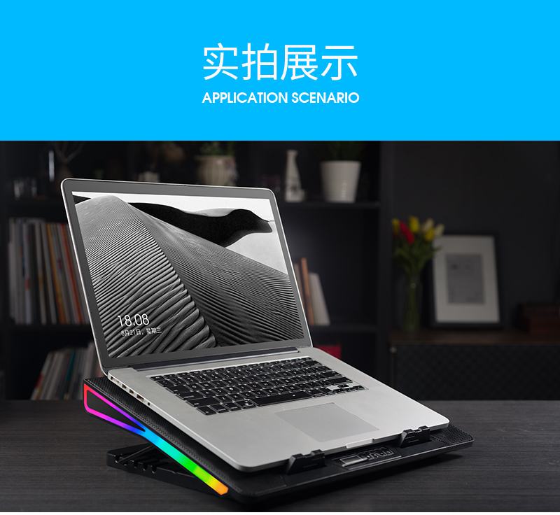 這款散熱器主要上貓,產品特點主要是獨立大風扇,風量大,RGB七彩炫光,可調可控,所以在設計中根據產品調性,以深色為主色調,對產品的功能,特點進行深度挖掘,加上特效演示,來展示產品的設計原理,上線后轉化率明顯上升。