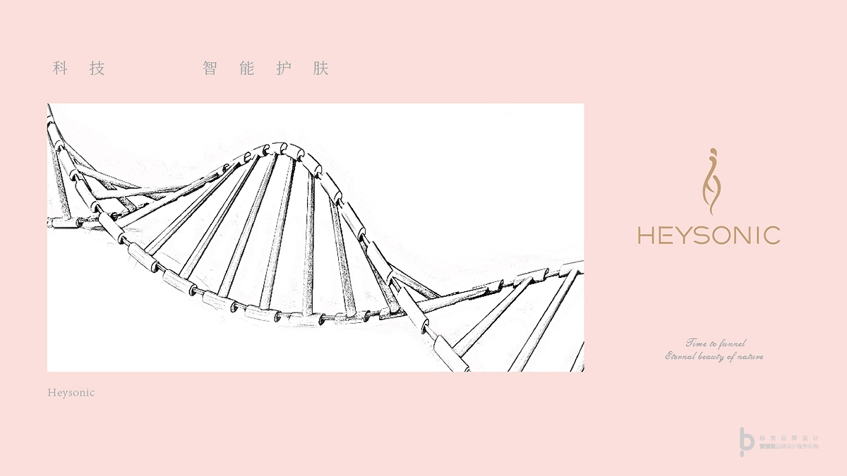 HEYSONIC化妝品品牌源自韓國,輕醫美皮膚管理,科技智能,科技護膚,健康有效的皮膚養護專家。定位為優雅知性的女性化妝品品牌。 標志用簡單抽象的線條,描繪出一個姿態優雅女性形象。將女性的曲線美,品牌首字母H,代表生物科技的基因鏈,巧妙的融合在一起,很好的傳達了HEYSONIC品牌針對優雅知性女性群體,科技智能養生護膚的產品定位。